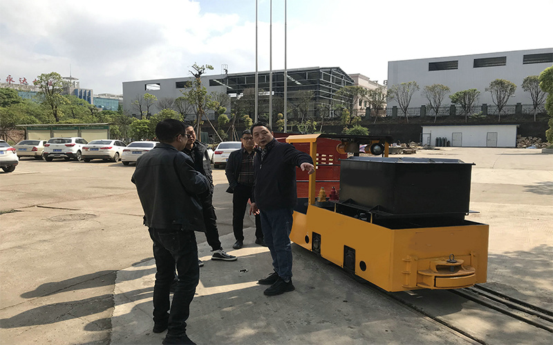 公司领导给客户详细的讲解了锂电池电机车与人车的数据与性能,并一同参观了出厂测试。